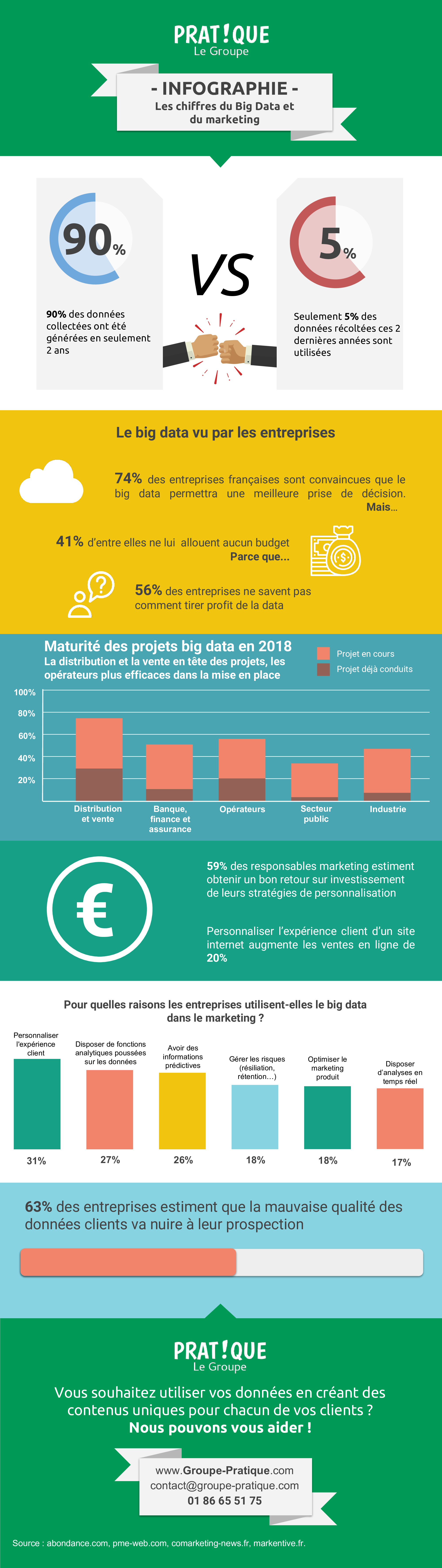 Pourtant très tendance, le Big Data est loin d’être la première préoccupation des entreprises. Bien que très utile dans beaucoup de domaines, notamment dans la distribution, dans la vente et chez les opérateurs, la croissance du marché du Big Data reste modérée. Nous faisons le point avec cette infographie sur la réalité de son usage par les entreprises.